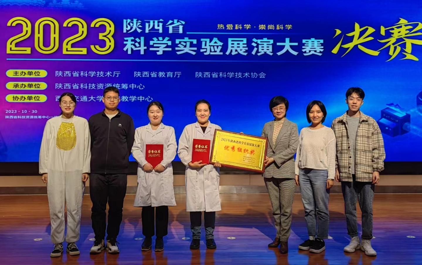 10月30日,由陜西省科技廳、陜西省教育廳和陜西省科學(xué)技術(shù)學(xué)會主辦,陜西省科技資源統(tǒng)籌中心承辦的2023年陜西省科學(xué)實驗展演大賽順利舉辦。我?;膶W(xué)院教師王毅夢團(tuán)隊作品“別出‘新材’,出乎意料”榮獲三等獎,化材學(xué)院教師屈佳團(tuán)隊作品“碳點(diǎn)之光”榮獲優(yōu)秀獎。學(xué)校榮獲優(yōu)秀組織獎。