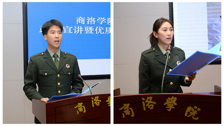 退伍學(xué)生代表王立強(qiáng)、甄蕊用真摯的情感,講述了各自帶著親人的囑托和學(xué)校的期盼參軍入伍,融入綠色軍營的心路歷程。他們表示,兩年的軍旅生涯讓他們塑造了健康體魄、磨煉了頑強(qiáng)意志、提升了學(xué)習(xí)能力、受到了精神洗禮。他們號(hào)召大學(xué)生應(yīng)積極響應(yīng)國家征兵政策,把報(bào)國之志轉(zhuǎn)化為實(shí)際行動(dòng),為富國強(qiáng)軍貢獻(xiàn)自己的才華和青春。