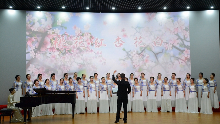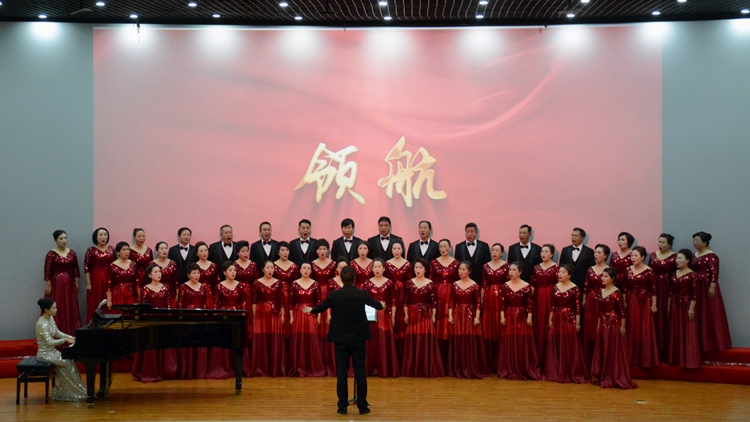 商州紅梅聲歌合唱團表演了混聲合唱《領(lǐng)航》、女聲合唱《桃花紅杏花白》等曲目,用絢爛的樂聲表達(dá)億萬中華兒女愛黨愛國的赤子情懷和共同心聲,演繹了山西民歌蘊含的民族藝術(shù)魅力,激發(fā)觀眾對美好世界的追求,傳遞了立德樹人、美育啟智的價值理念。