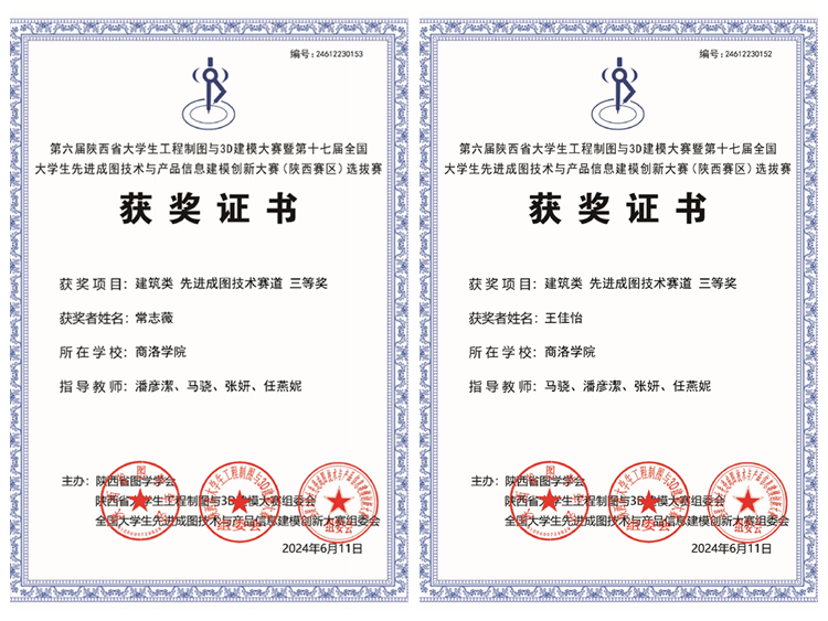 近日,第十七屆全國大學生先進成圖技術(shù)與產(chǎn)品信息建模創(chuàng)新大賽(陜西賽區(qū))選拔賽結(jié)果揭曉,我校城鄉(xiāng)規(guī)劃與建筑工程學院城鄉(xiāng)規(guī)劃專業(yè)學生常志薇、王佳怡在建筑類(先進成圖技術(shù)賽道)中分獲三等獎。