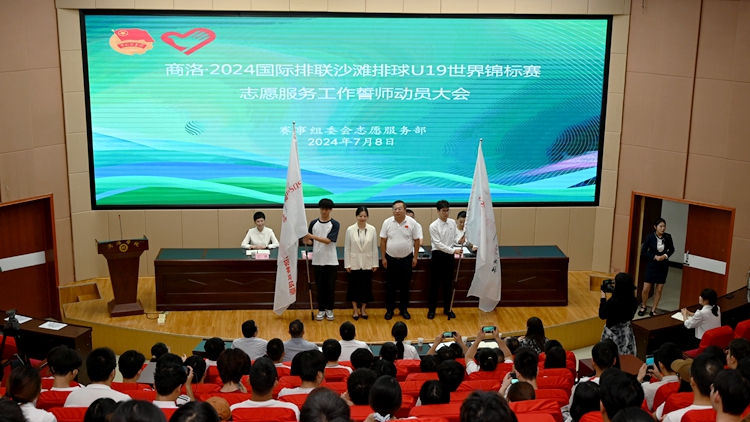 為全面做好2024國(guó)際排聯(lián)沙灘排球U19世界錦標(biāo)賽賽會(huì)志愿服務(wù)工作,7月8日,2024國(guó)際排聯(lián)沙灘排球U19世界錦標(biāo)賽賽會(huì)志愿者誓師動(dòng)員大會(huì)在我校舉行。商洛市政府副市長(zhǎng)溫琳出席大會(huì)并講話(huà)。校黨委副書(shū)記、紀(jì)委書(shū)記王浩出席大會(huì)并致辭。商洛市體育局局長(zhǎng)全斐,商州區(qū)委常委、組織部長(zhǎng)王沛出席活動(dòng)。商洛市政府辦公室、團(tuán)市委、團(tuán)區(qū)委相關(guān)人員,我校相關(guān)部門(mén)負(fù)責(zé)人和全體賽會(huì)志愿者230余人參加會(huì)議。誓師動(dòng)員大會(huì)由團(tuán)市委書(shū)記饒佳主持。