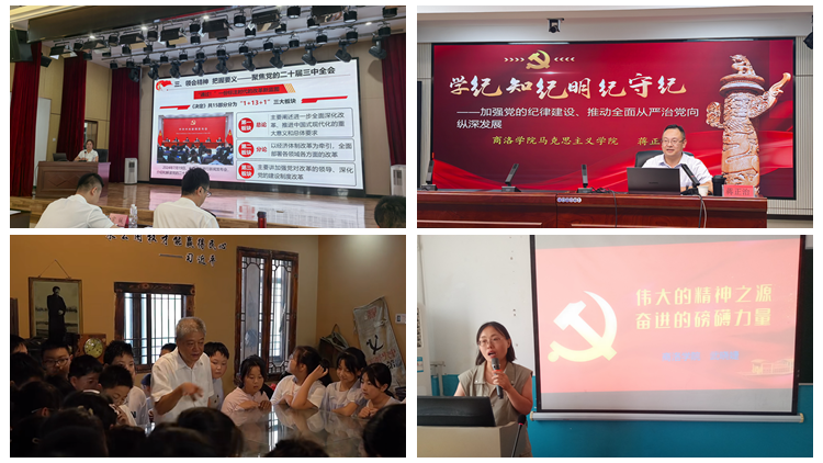 8月13日至16日,馬克思主義學(xué)院教師劉麥霞、蔣正治、楊增強(qiáng)、武曉婕、路遠(yuǎn)前往西安海關(guān),分別以《黨的二十屆三中全會精神解讀》《弘揚(yáng)偉大建黨精神 從百年黨史中汲取奮進(jìn)力量 》《加強(qiáng)黨的紀(jì)律建設(shè)、推動全面從嚴(yán)治黨向縱深發(fā)展》《做一名忠誠務(wù)實(shí)擔(dān)當(dāng)干凈的年輕干部》《重讀<共產(chǎn)黨宣言> 堅(jiān)定理想信念》為題作了專題報(bào)告。自8月20日開始,馬克思主義學(xué)院武曉婕、王秀絨、彭衛(wèi)麗等教師相繼赴商洛市各中小學(xué)校,圍繞偉大建黨精神、黨史學(xué)習(xí)教育、黨紀(jì)學(xué)習(xí)教育三個(gè)主題開展系列主題宣講活動。