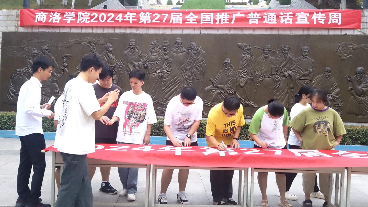 啟動儀式結束后,現(xiàn)場師生在推廣橫幅上簽字表達學習國家通用語言文字的決心。