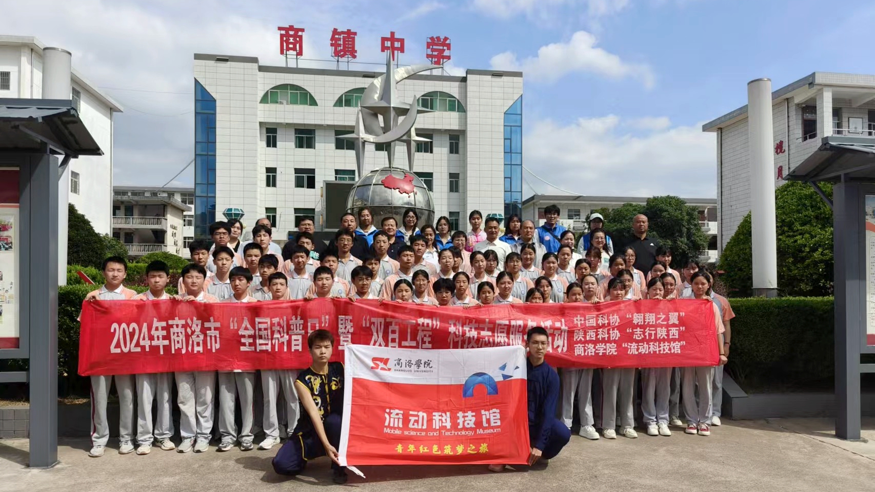 9月23日,我校聯(lián)合商洛市科協(xié)、丹鳳縣科協(xié)舉辦“2024年商洛市‘全國科普日’暨‘雙百工程’科技志愿服務(wù)活動(dòng)”丹鳳縣專場活動(dòng)。商洛市科協(xié)、丹鳳縣科協(xié)相關(guān)領(lǐng)導(dǎo)和工作人員、丹鳳縣商鎮(zhèn)中學(xué)500余名師生、我?!傲鲃?dòng)科技館”大學(xué)生科技志愿服務(wù)項(xiàng)目團(tuán)隊(duì)17名志愿者參加活動(dòng)。