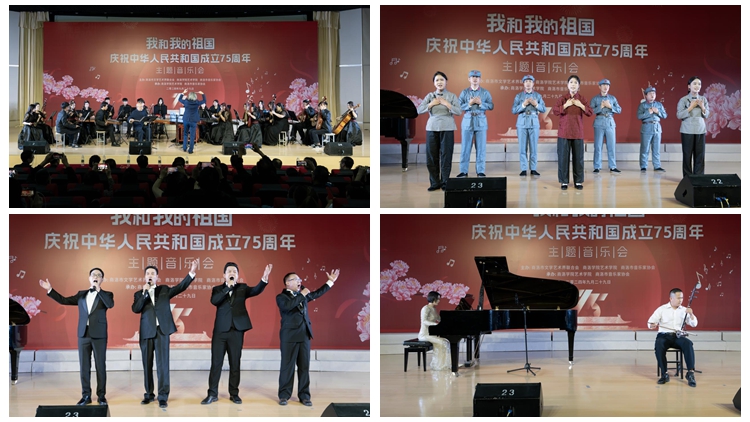 為慶祝新中國75周年華誕,增強商洛市民的愛國熱情和民族自豪感,9月29日晚,由商洛市文學藝術界聯(lián)合會、商洛學院藝術學院、商洛市音樂家協(xié)會聯(lián)合主辦“我和我的祖國——慶祝中華人民共和國成立75周年主題音樂會”在商洛學院隆重舉辦。商洛市文聯(lián)黨組書記、主席劉明權,市文聯(lián)黨組成員、專職副主席李志華,商洛學院黨委委員、組織部部長張向東,黨委委員、宣傳部部長王霄飛,商洛市音協(xié)主席李世鵬,藝術學院黨政領導班子與300余名師生及社會各界人士共同觀看演出。