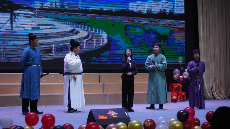 馬克思主義學(xué)院、人文學(xué)院、數(shù)計(jì)學(xué)院師生同臺(tái),聯(lián)袂表演合唱、朗誦等節(jié)目,共話師生情誼及新年愿景。