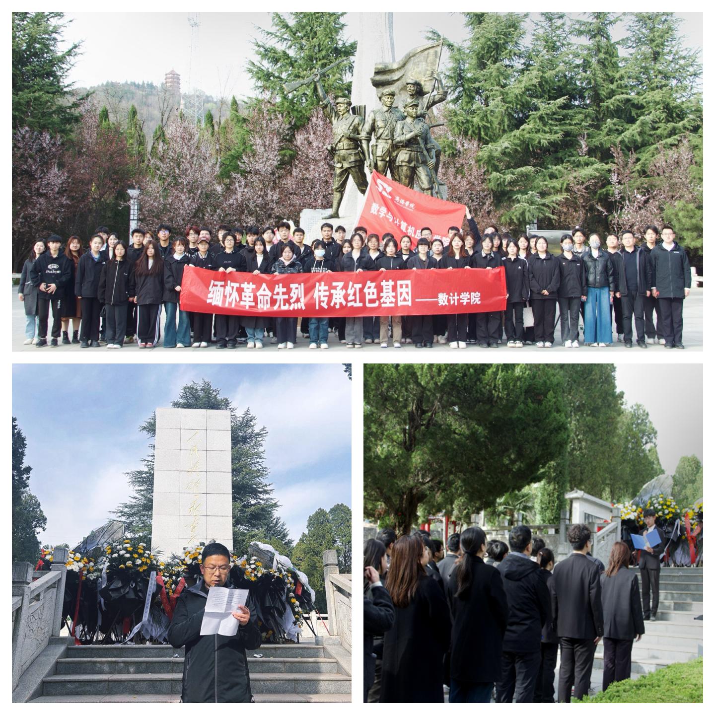 數(shù)學(xué)與計(jì)算機(jī)應(yīng)用學(xué)院組織師生代表前往商洛市烈士陵園開(kāi)展“緬懷先烈英魂,傳承紅色薪火”主題祭掃活動(dòng)。烈士陵園內(nèi),學(xué)院黨委副書(shū)記許博、輔導(dǎo)員代表及學(xué)生會(huì)全體成員垂首默哀,以無(wú)聲敬意寄托對(duì)英雄的無(wú)限哀思。學(xué)生代表向烈士紀(jì)念碑敬獻(xiàn)花圈,全體師生面向團(tuán)旗,高舉右拳,重溫入團(tuán)誓詞。師生有序瞻仰烈士紀(jì)念碑,逐一敬獻(xiàn)小白花,并跟隨陵園工作人員參觀紀(jì)念館,聆聽(tīng)革命歷史、學(xué)習(xí)英烈事跡。為表達(dá)對(duì)先烈的敬意,師生們自發(fā)撿拾陵園及紀(jì)念碑周邊垃圾雜物,以實(shí)際行動(dòng)守護(hù)莊嚴(yán)圣地。
