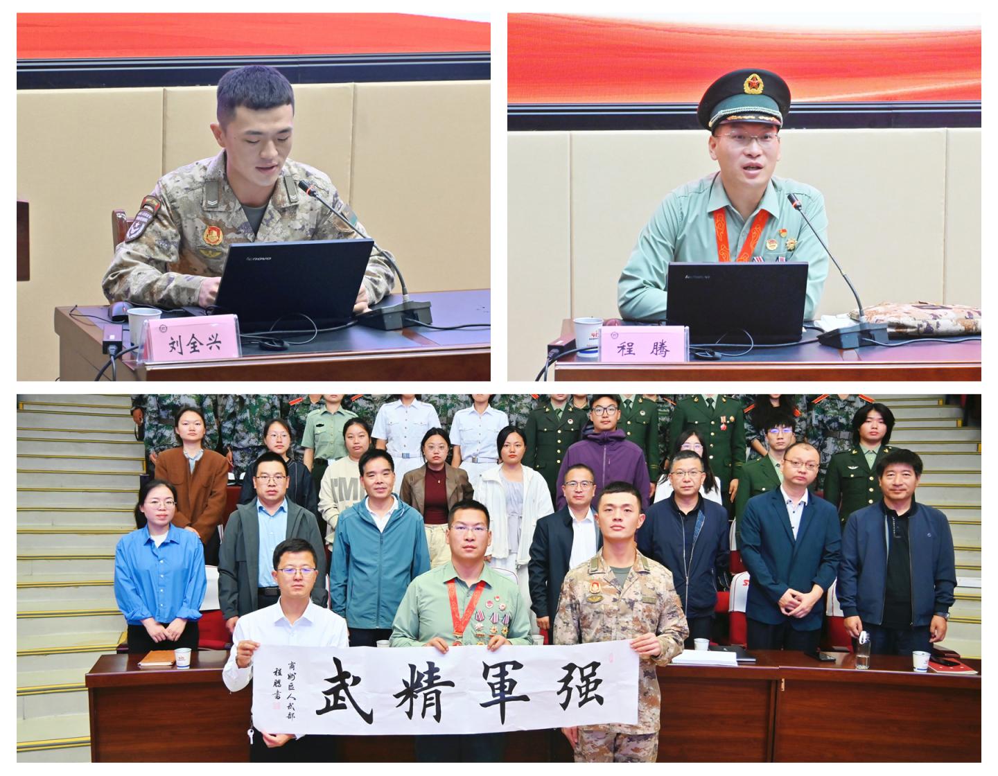 劉全興以《人生的96步》為題,為在場師生深情回顧了參加九三閱兵為期數(shù)月的封閉式集訓(xùn)歷程。程騰以《不負(fù)青春韶華共赴時(shí)代使命》為題,為在場師生分享了自己催人奮進(jìn)的軍旅故事,并向?qū)W校贈送《強(qiáng)軍精武》書法作品。兩位嘉賓的講述真摯動人、振奮人心,現(xiàn)場多次響起熱烈掌聲。同學(xué)們紛紛表示,通過聆聽嘉賓先進(jìn)事跡,不僅增強(qiáng)了自身對國防事業(yè)的理解與認(rèn)同,更激發(fā)了投身強(qiáng)國偉業(yè)、勇?lián)鷷r(shí)代使命的青春熱情。