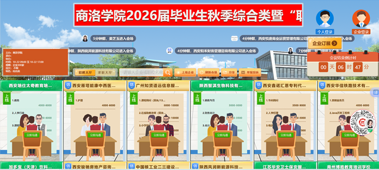 10月22日,我校舉辦2026屆畢業(yè)生秋季綜合類暨“職引未來”全國(guó)城市聯(lián)合招聘高校畢業(yè)生校園專場(chǎng)網(wǎng)絡(luò)視頻招聘會(huì)。招聘會(huì)共邀請(qǐng)華天科技(西安)有限公司、中國(guó)核工業(yè)二三建設(shè)有限公司、深圳慧通商務(wù)有限公司等高質(zhì)量用人單位260余家,累計(jì)為畢業(yè)生提供就業(yè)崗位4600余個(gè)。