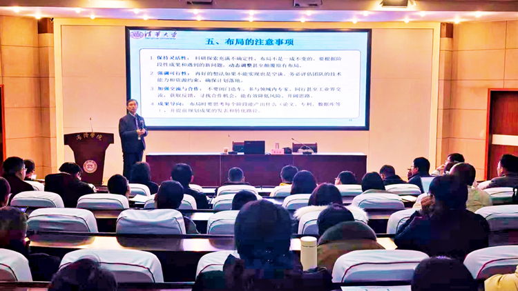 11月19日,清華大學(xué)朱永法教授應(yīng)邀來校,為我校師生作“科研項目的布局與構(gòu)思、計劃與實施”專題報告?;膶W(xué)院、電信學(xué)院、生物學(xué)院、建工學(xué)院、數(shù)計學(xué)院、經(jīng)管學(xué)院、健康學(xué)院相關(guān)負(fù)責(zé)人及師生代表150余人聆聽了報告會。