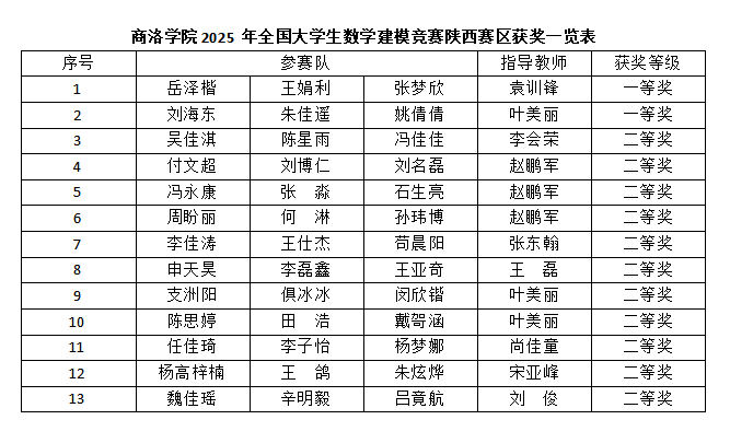 商洛學(xué)院學(xué)子在2025年全國(guó)大學(xué)生數(shù)學(xué)建模競(jìng)賽中榮獲一等獎(jiǎng)2項(xiàng)、二等獎(jiǎng)11項(xiàng)