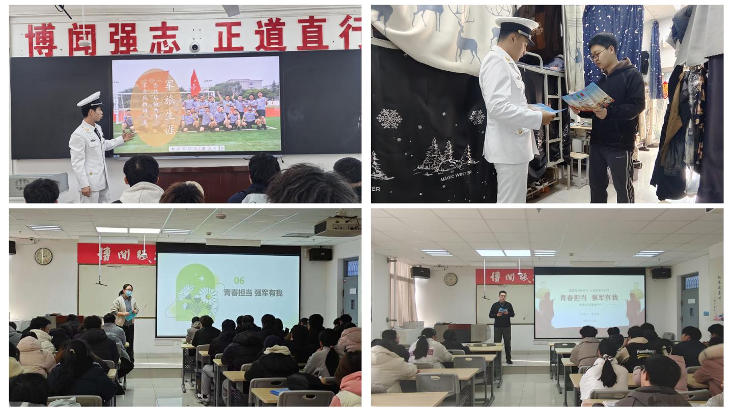 各學(xué)院開展形式多樣的征兵宣傳活動(dòng)。馬克思主義學(xué)院推行“宣講+榜樣”個(gè)性化指導(dǎo);人文學(xué)院實(shí)施師生聯(lián)動(dòng)宣講;數(shù)計(jì)學(xué)院搭建“入伍+就業(yè)”雙促通道;電信學(xué)院開展“三個(gè)一”宣傳服務(wù)活動(dòng);化材、生物等學(xué)院整合線上線下資源,構(gòu)建全方位宣傳網(wǎng)絡(luò);健康學(xué)院將征兵宣傳融入考研、就業(yè)指導(dǎo)中;教育學(xué)院聚焦女兵征集,開展針對(duì)性動(dòng)員;建工、經(jīng)管、藝術(shù)等學(xué)院通過(guò)三輪宣講、矩陣推送、升旗儀式思政教育等形式,實(shí)現(xiàn)全員覆蓋、精準(zhǔn)動(dòng)員,形成全校征兵工作“一盤棋”格局。