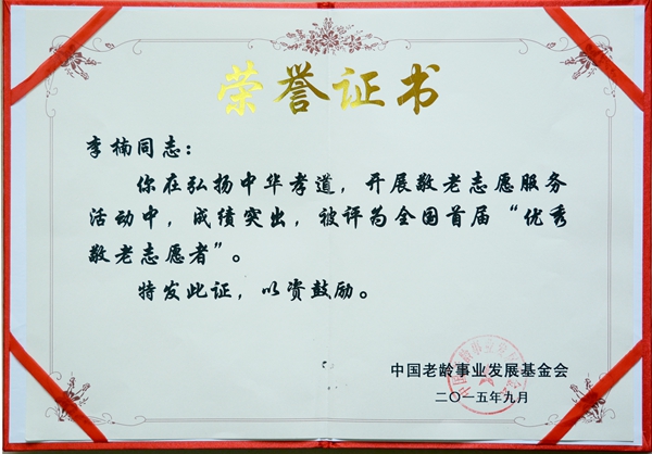 日前,中國老齡事業(yè)發(fā)展基金會發(fā)出《關于表彰全國首屆北京華夏惠眾養(yǎng)老產業(yè)投資有限公司等百家“敬老志愿服務模范單位”、溫向明等百名“最美敬老志愿者”、沈慧琴等千名“優(yōu)秀敬老志愿者”的決定》。我校學生李楠、盧朋輝榮獲全國首屆“優(yōu)秀敬老志愿者”榮譽稱號。同時二人也獲得商洛市表彰,被評為“商洛市為老服務志愿者先進個人”。