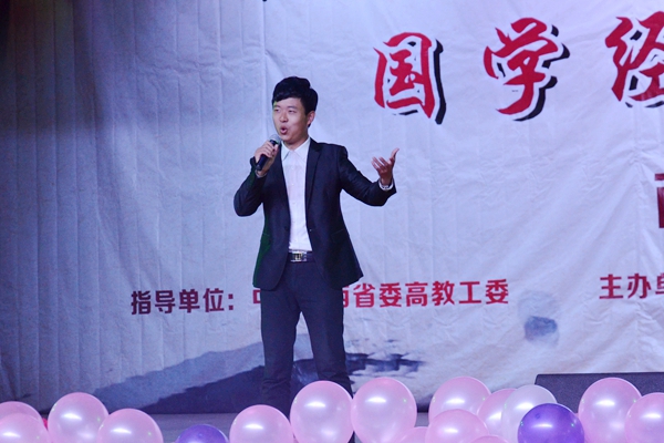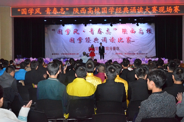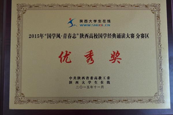 10月30日,我校師生代表參加了由陜西省委高教工委陜西大學(xué)生在線主辦的“國學(xué)風(fēng)·青春志”國學(xué)經(jīng)典誦讀賽,比賽在西安培華學(xué)院、陜西工業(yè)職業(yè)技術(shù)學(xué)院同時舉辦。全省共有16所高校33支隊伍參賽。由我校藝術(shù)學(xué)院王聰同學(xué)朗誦的《將進酒》獲得“國學(xué)風(fēng).青春志”陜西高校經(jīng)典誦讀大賽分賽區(qū)優(yōu)秀獎。