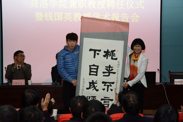 劉建林在聘任儀式上回顧了錢國英教授與我校的深厚情誼和對我校的熱情幫助,介紹了錢國英教授在高等教育教學(xué)研究方面的杰出成就。他說,商洛學(xué)院發(fā)展到今天,已經(jīng)完全融入到了本科教育的行列,正在以“穩(wěn)基、提質(zhì)、增速”,創(chuàng)新驅(qū)動(dòng)發(fā)展的新常態(tài),確保學(xué)校在中國高等教育深化改革的洪流中不落伍、出成績。在這個(gè)過程中,賈平凹先生,侯洵、劉加平院士,教育部本科教學(xué)研究中心吳博主任、錢國英校長和西北大學(xué)高勝利教授等各界人士給予了我們巨大幫助與支持。我校師生員工要懂得感恩,牢記以錢國英教授為代表的專家學(xué)者對我們的幫助,把這些幫助轉(zhuǎn)化為工作動(dòng)力,在各自崗位上為學(xué)校的創(chuàng)新發(fā)展做出自己應(yīng)有的貢獻(xiàn)。