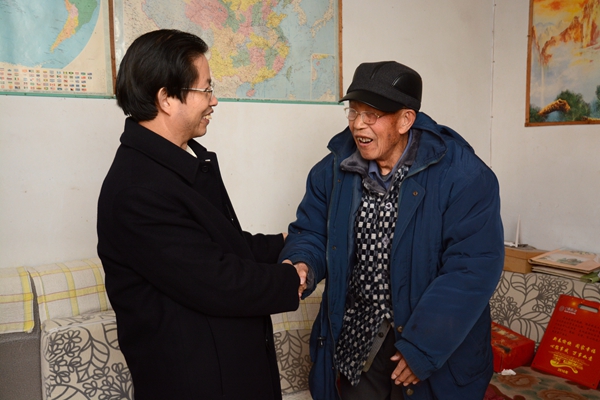 在孫玉峰老人家里,周樹紅詳細(xì)詢問老人的身體和家庭情況,以及生活上需要組織幫助解決的問題,對(duì)他為新中國教育事業(yè)做出的貢獻(xiàn)表示感謝,祝福他新年快樂、幸福安康,并叮囑他保重身體。
