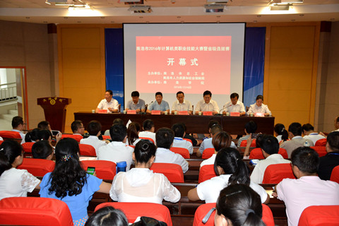 7月16日,由我校承辦的商洛市2016年計(jì)算機(jī)類(lèi)職業(yè)技能大賽在我校舉行。商洛市人大常委會(huì)副主任、市總工會(huì)主席李選良宣布大賽正式開(kāi)始。校黨委副書(shū)記、副校長(zhǎng)范新會(huì),商洛職業(yè)技術(shù)學(xué)院黨委書(shū)記、商洛市人力資源和社會(huì)保障局局長(zhǎng)楊萌出席開(kāi)幕式。我校教務(wù)處、繼續(xù)教育學(xué)院及商洛市總工會(huì)、商洛市人力資源和社會(huì)保障局等相關(guān)負(fù)責(zé)人參加開(kāi)幕式。大賽開(kāi)幕式由商洛市總工會(huì)常務(wù)副主席張新發(fā)主持。