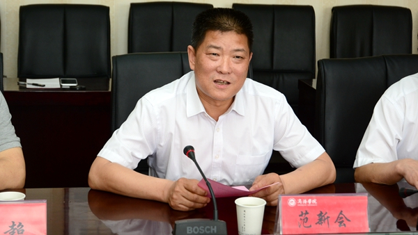 范新會從辦學條件、在校生規(guī)模、學科專業(yè)建設、辦學特色和師資隊伍建設等方面介紹了我?;厩闆r。