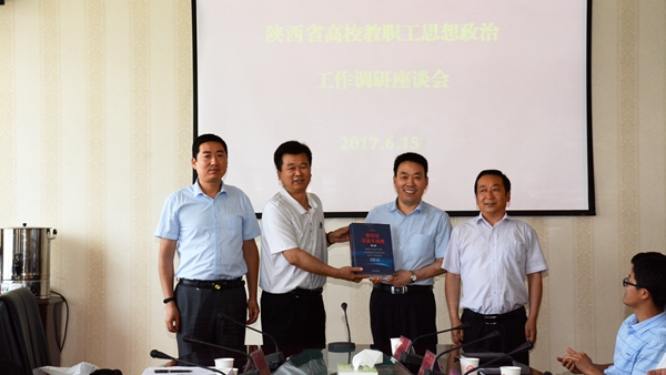 6月15日,由陜西省教育工會(huì)副主席陳鵬帶隊(duì),由西安外國語大學(xué)工會(huì)主席趙沛、思政部副主任張親霞等一行7人組成的課題調(diào)研組來我校,對(duì)我校教職工思想政治工作開展調(diào)研。校黨委書記龍治剛會(huì)見了調(diào)研組成員。校黨委副書記、工會(huì)主席彭虎軍陪同會(huì)見,并與調(diào)研組進(jìn)行座談。座談會(huì)由趙沛主持。