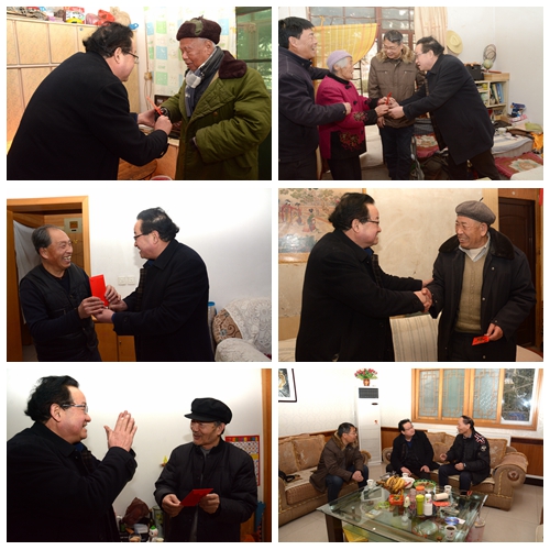 2月9日,在春節(jié)即將來臨之際,副校長魏書堂在院長辦公室、離退休職工工作處負責人的陪同下先后來到張和銀、崔振喜、費興順、任書年、王安言、王忠孝、張孝春等退休職工家中,為他們送去了慰問金和學校黨政的祝福與關(guān)懷。