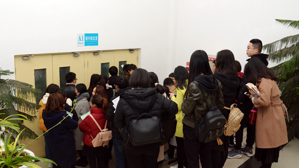 勤奮的莘莘學子早早到來,等候圖書館開放。
