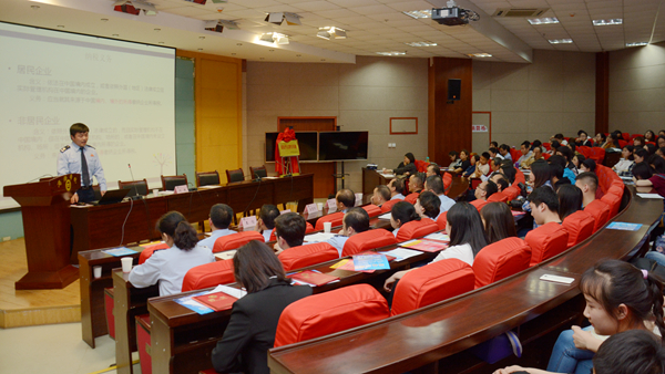 在第27個(gè)全國(guó)稅收宣傳月到來(lái)之際,為了宣傳普及稅法知識(shí),增強(qiáng)師生稅法意識(shí),4月19日,商洛市國(guó)稅局、商洛市地稅局聯(lián)合開(kāi)展的“點(diǎn)亮夢(mèng)想?稅收同行”稅法宣傳活動(dòng)走進(jìn)我校。紀(jì)委書(shū)記王思懷,市國(guó)稅局副局長(zhǎng)劉存智,市地稅局副局長(zhǎng)馮書(shū)云出席活動(dòng)。我校宣傳部、財(cái)務(wù)處、經(jīng)管學(xué)院負(fù)責(zé)人及相關(guān)人員,國(guó)稅、地稅干部,經(jīng)管學(xué)院師生代表150余人參加活動(dòng)。