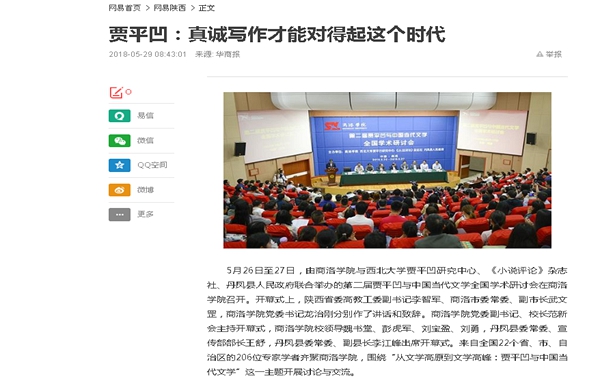 5月26日至27日,由我校與西北大學(xué)賈平凹研究中心、《小說(shuō)評(píng)論》雜志社、丹鳳縣人民政府聯(lián)合舉辦的第二屆賈平凹與中國(guó)當(dāng)代文學(xué)全國(guó)學(xué)術(shù)研討會(huì)在我校召開(kāi)。來(lái)自全國(guó)22個(gè)?。ㄖ陛犑?、自治區(qū))的200余位專家學(xué)者齊聚我校,同時(shí)還吸引了全國(guó)媒體記者的目光。人民網(wǎng)、光明網(wǎng)、中國(guó)社會(huì)科學(xué)網(wǎng)、中國(guó)作家網(wǎng)、搜狐網(wǎng)、陜西日?qǐng)?bào)、陜西省教育廳網(wǎng)站、陜西網(wǎng)、文化藝術(shù)報(bào)、三秦網(wǎng)、三秦都市報(bào)、華商網(wǎng)、西北信息報(bào)、商洛日?qǐng)?bào)、商洛市人民政府、商洛廣播電視臺(tái)、商洛新聞網(wǎng)等中央、省、市媒體和參會(huì)代表所在單位進(jìn)行了報(bào)道,一些微信、微博等自媒體也紛紛報(bào)道和轉(zhuǎn)發(fā)。通過(guò)報(bào)道,賈平凹的文學(xué)世界進(jìn)一步為更多讀者所了解,賈平凹的文學(xué)藝術(shù)進(jìn)一步在更廣闊的空間傳播,積極促進(jìn)了商洛乃至陜西文學(xué)事業(yè)的繁榮發(fā)展,擴(kuò)大了我校的知名度和影響力。