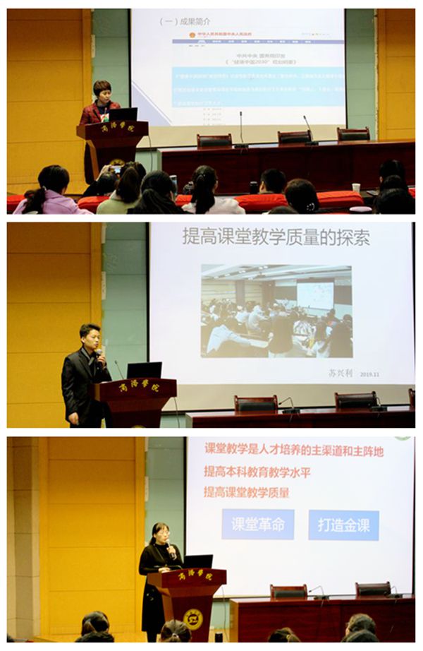 報(bào)告會(huì)上,和新盈作了題為《基于OBE教育理念,面向基層卓越醫(yī)生培養(yǎng)的形態(tài)實(shí)驗(yàn)教學(xué)新體系構(gòu)建與實(shí)踐》的報(bào)告,從宏觀(guān)角度向大家展示了如何選題、組織、申報(bào)教學(xué)成果獎(jiǎng);蘇興利作了題為《提高課堂教學(xué)質(zhì)量的探索》的報(bào)告,他結(jié)合自己的切身體會(huì),與大家分享了如何做一名好老師,如何上好一堂課;鄭慧媛以《對(duì)分課堂在胚胎學(xué)教學(xué)中的應(yīng)用與探索》為題,向大家講解了陜西省第一屆課堂教學(xué)改革創(chuàng)新大賽的比賽形式、參賽準(zhǔn)備,并為大家進(jìn)行了現(xiàn)場(chǎng)示范教學(xué)。三位專(zhuān)家的報(bào)告精彩紛呈、形式多樣,與會(huì)教師紛紛表示,本次報(bào)告會(huì)啟發(fā)了思路,開(kāi)拓了視野,今后將努力汲取專(zhuān)家報(bào)告的精華為我所用,不斷提高課堂教學(xué)水平。