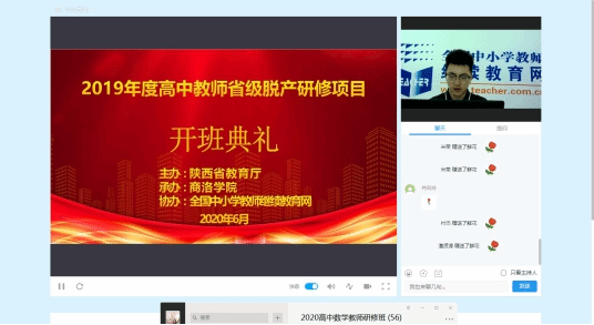 6月2日上午,陜西省2019年高中數(shù)學(xué)、化學(xué)教師省級研修項目順利開班。本次培訓(xùn)由我校承辦,全國中小學(xué)教師繼續(xù)教育網(wǎng)協(xié)辦。受疫情影響,本次培訓(xùn)采取線上教學(xué)方式,全省高中數(shù)學(xué)、高中化學(xué)各50名教師參加培訓(xùn)。我校黨委書記龍治剛研究員應(yīng)邀為學(xué)員做了首場報告。