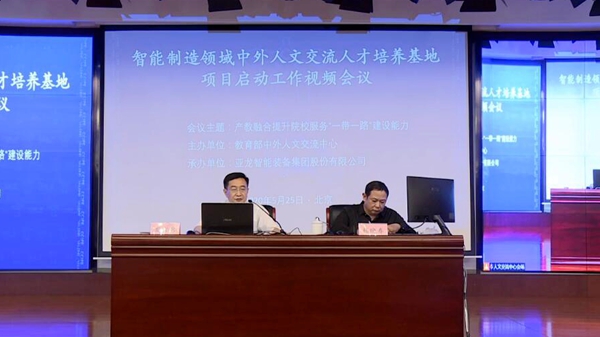 近日,教育部“智能制造領(lǐng)域中外人文交流人才培養(yǎng)基地項目”啟動工作視頻會議暨“產(chǎn)教融合提升院校服務(wù)‘一帶一路’建設(shè)能力”主題會議在北京舉行。本次項目啟動工作會以線上視頻形式進行,我校作為智能制造領(lǐng)域中外人文交流人才培養(yǎng)項目2020年第二批籌建院校在線參加了會議。會上,教育部中外人文交流中心主任杜柯偉為項目入選院校在線“云授牌”并頒發(fā)籌建證書。
