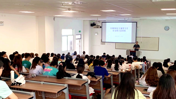 張博副教授現(xiàn)任全國大學(xué)生數(shù)學(xué)建模競賽陜西賽區(qū)組委會副秘書長兼辦公室主任,他以《數(shù)學(xué)建模論文摘要寫作和競賽注意事項》為題作數(shù)學(xué)建模專題報告。我校參加2020年全國大學(xué)生數(shù)學(xué)建模競賽的學(xué)生和指導(dǎo)教師聆聽了張教授的精彩報告。報告借助建模摘要典型案例分析,詳解了建模競賽論文摘要的寫作方法,介紹了競賽期間建模論文的提交、相似度檢測以及競賽紀(jì)律等注意事項,鼓勵師生堅定信心、積極備賽。