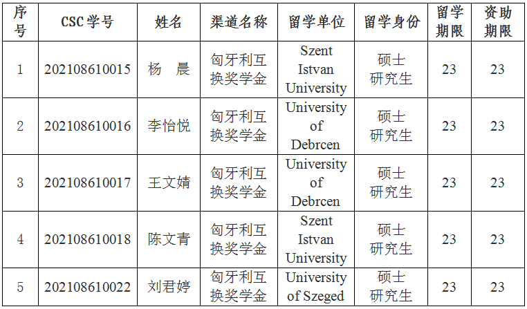 2021年度匈牙利互換獎(jiǎng)學(xué)金項(xiàng)目錄取名單