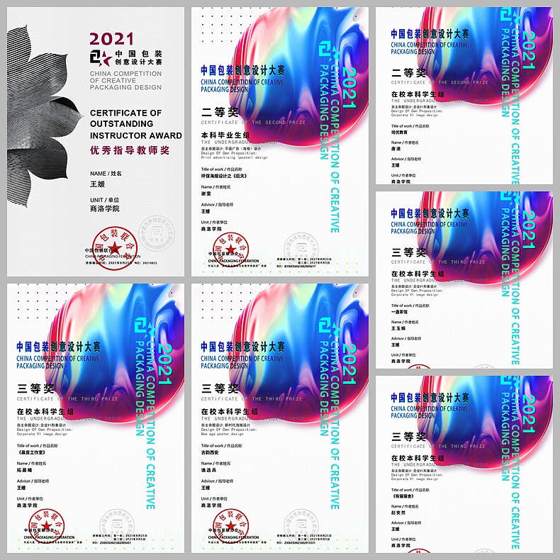 近日,由中國包裝聯(lián)合會舉辦的2021年中國包裝創(chuàng)意設計大賽圓滿結束,我校師生踴躍參賽,共獲得二等獎2項,三等獎11項,優(yōu)秀獎14項,1名教師獲得“優(yōu)秀指導教師”獎。