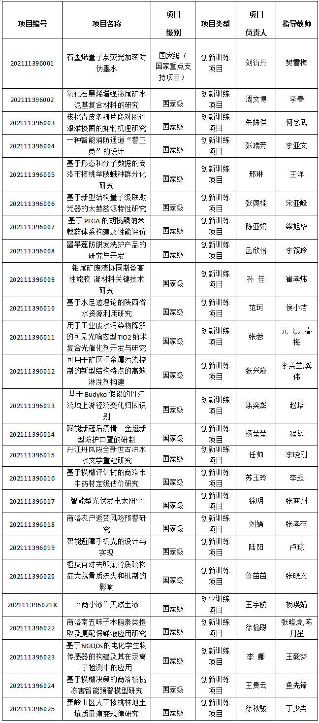 2021年國家級大學生創(chuàng)新創(chuàng)業(yè)訓練計劃項目一覽表