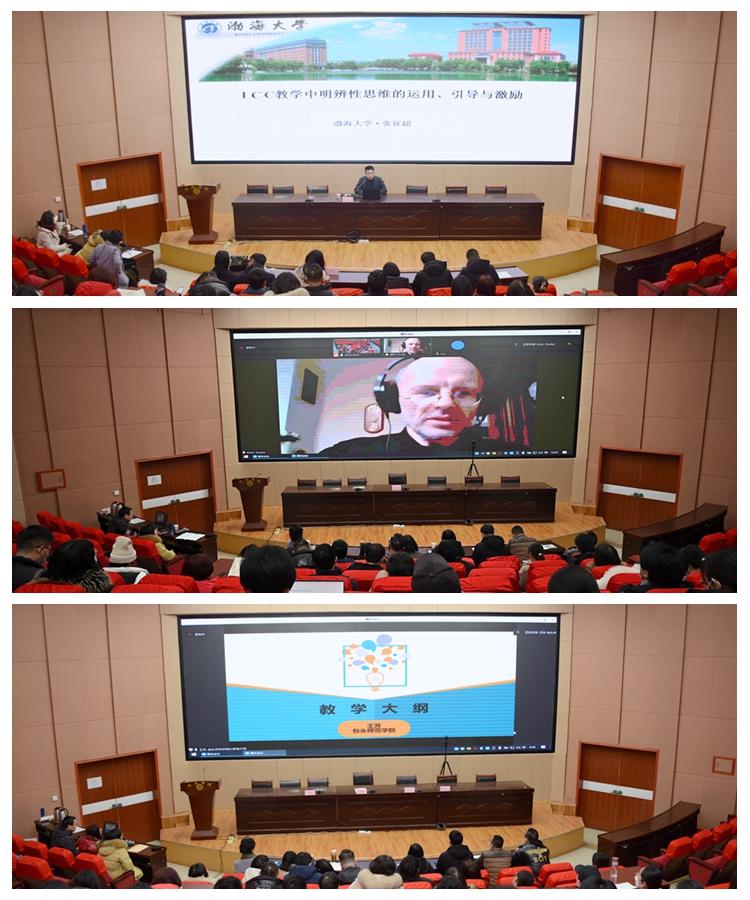 培訓(xùn)期間,渤海大學(xué)張征超教授、波蘭格達(dá)斯克大學(xué)Artur Szutta教授、包頭師范學(xué)院王芳副教授分別就《明辨性思維在ICC項目教學(xué)中的應(yīng)用》《ICC課程教學(xué)評價》《明辨性思維》《教學(xué)大綱設(shè)計》等專題,圍繞ICC項目的教學(xué)理念和教學(xué)特點,為參訓(xùn)教師作了四場具有學(xué)術(shù)性、實踐性和針對性的專題報告。