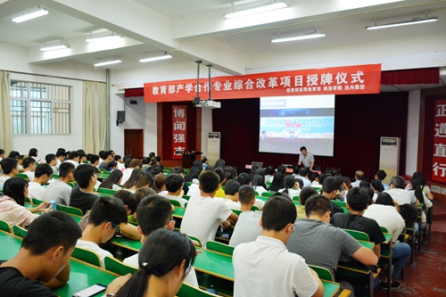 9月14日,由我校與達內集團合作的教育部產學合作專業(yè)綜合改革項目授牌儀式在二樓報告廳舉行。校黨委副書記、副校長范新會出席活動并授牌,達內集團西北區(qū)總經理陳相峰與數計學院院長張林接牌。數計學院師生、達內集團相關負責人參加活動。活動由教務處處長李超主持。