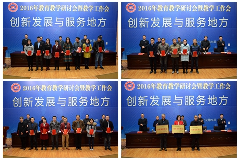大會對我校2016年度優(yōu)秀教案及優(yōu)秀電子課件、教育實(shí)習(xí)優(yōu)秀指導(dǎo)教師和優(yōu)秀實(shí)習(xí)生、教育教學(xué)研討會優(yōu)秀論文及優(yōu)秀組織單位、青年教師教學(xué)技能競賽優(yōu)勝者、校級以上本科教學(xué)工程項(xiàng)目及教學(xué)名師進(jìn)行了表彰。副校長魏書堂宣讀了表彰決定。在熱烈的掌聲中,出席大會的校領(lǐng)導(dǎo)為受表彰的集體和個人代表頒發(fā)了獲獎證書。陜西省第十屆教學(xué)名師、化材學(xué)院院長周春生,2016年青年教師教學(xué)技能大賽一等獎獲得者李亞文分別作了發(fā)言。