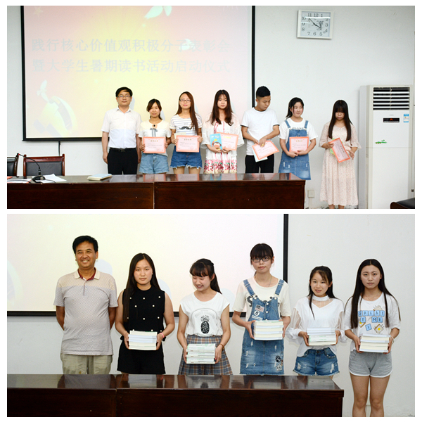 為貫徹落實(shí)習(xí)近平總書(shū)記關(guān)于全國(guó)哲學(xué)社會(huì)科學(xué)工作重要講話精神,宣傳弘揚(yáng)社會(huì)主義核心價(jià)值觀,推動(dòng)大學(xué)生閱讀經(jīng)典著作,學(xué)習(xí)社會(huì)科學(xué),堅(jiān)定理想信念,6月29日,我校思政部舉辦“踐行核心價(jià)值觀積極分子表彰會(huì)暨大學(xué)生暑期讀書(shū)活動(dòng)”啟動(dòng)儀式。副校長(zhǎng)劉勇出席表彰會(huì)。會(huì)議由思政部副主任李龍強(qiáng)主持。思政部教師為受表彰學(xué)生發(fā)放了證書(shū)和暑期閱讀書(shū)籍。