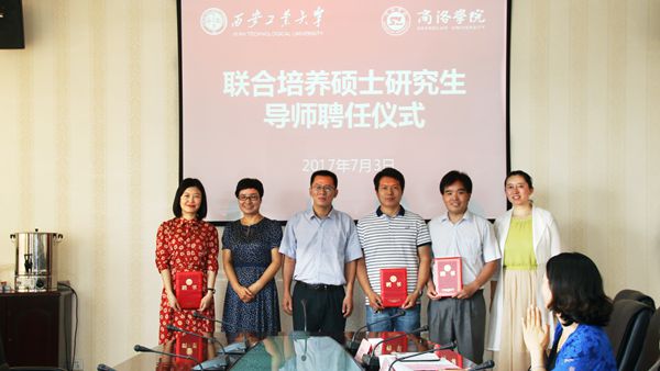 7月3日,我校舉行與西安工業(yè)大學(xué)聯(lián)合培養(yǎng)碩士研究生導(dǎo)師聘任儀式,聘任我校經(jīng)管學(xué)院教授賈長安,副教授王怡、劉龍龍為西安工業(yè)大學(xué)校外碩士研究生導(dǎo)師。校長范新會(huì)出席聘任儀式并講話。西安工業(yè)大學(xué)經(jīng)管學(xué)院院長張弘為受聘碩士研究生導(dǎo)師頒發(fā)聘書。副校長劉勇主持聘任儀式。