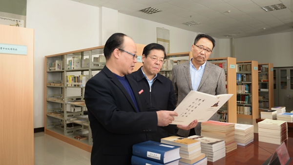 李穎科一行深入我校商洛文化暨賈平凹研究中心、商洛紅色文化資料館和學(xué)校藝術(shù)展廳等處,詳細(xì)了解了我校哲學(xué)社會科學(xué)工作開展情況。李穎科表示,商洛學(xué)院扎根商洛歷史文化、紅色文化土壤,培育了一批區(qū)域特色鮮明的人文社科品牌,希望商洛學(xué)院繼續(xù)深入挖掘商洛區(qū)域歷史文化資源,加大哲學(xué)社會科學(xué)研究投入,多出新成果、新亮點(diǎn)。省社科聯(lián)會積極支持學(xué)校哲學(xué)社會科學(xué)工作,在平臺建設(shè)、項目申報上給予政策和資金支持,共同為繁榮和發(fā)展哲學(xué)社會科學(xué)做出貢獻(xiàn)。