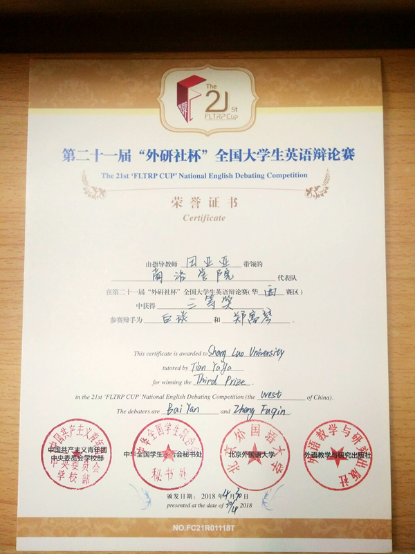 4月28日至30日,第二十一屆“外研社杯”全國(guó)大學(xué)生英語(yǔ)辯論賽華西賽區(qū)決賽在蘭州交通大學(xué)舉行。我校人文學(xué)院英語(yǔ)專業(yè)學(xué)生白琰、鄭富琴,以較強(qiáng)的英語(yǔ)思辯能力和扎實(shí)的口語(yǔ)水平榮獲三等獎(jiǎng)。