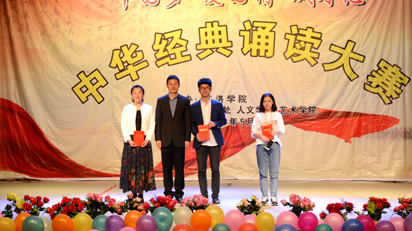 為深入學習貫徹習近平新時代中國特色社會主義思想和黨的十九大精神,全面落實《國家語言文字事業(yè)“十三五”發(fā)展規(guī)劃》,5月9日晚,由教務(wù)處、人文學院、藝術(shù)學院聯(lián)合承辦的“中國夢?愛國情?成才志”中華經(jīng)典誦讀大賽在大學生活動中心成功舉辦,副校長劉勇出席大賽。宣傳部、團委、教務(wù)處、人文學院、藝術(shù)學院相關(guān)負責人參加活動。