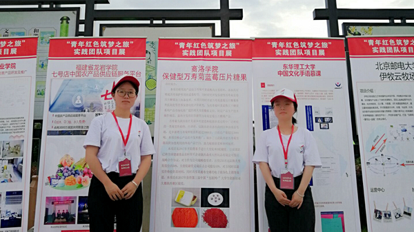 7月12日至16日,第四屆中國(guó)“互聯(lián)網(wǎng)+”大學(xué)生創(chuàng)新創(chuàng)業(yè)大賽“青年紅色筑夢(mèng)之旅”全國(guó)對(duì)接活動(dòng)在江西舉行。健康學(xué)院教師任嘉瑜、生物學(xué)院學(xué)生牛仙,代表《保健型萬壽菊藍(lán)莓壓片糖果》團(tuán)隊(duì)參加此次活動(dòng),這是我校師生首次參加全國(guó)“互聯(lián)網(wǎng)+”系列活動(dòng)。