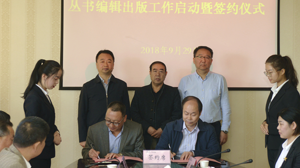 陜西師范大學(xué)出版總社大眾文化出版中心相關(guān)負(fù)責(zé)人、叢書分冊編輯,宣傳部、科技處、人文學(xué)院、商洛文化暨賈平凹研究中心負(fù)責(zé)人和教師代表參加簽約儀式。商洛文化暨賈平凹研究中心負(fù)責(zé)人張文諾教授、叢書編輯代表杜薇博士作了表態(tài)發(fā)言。