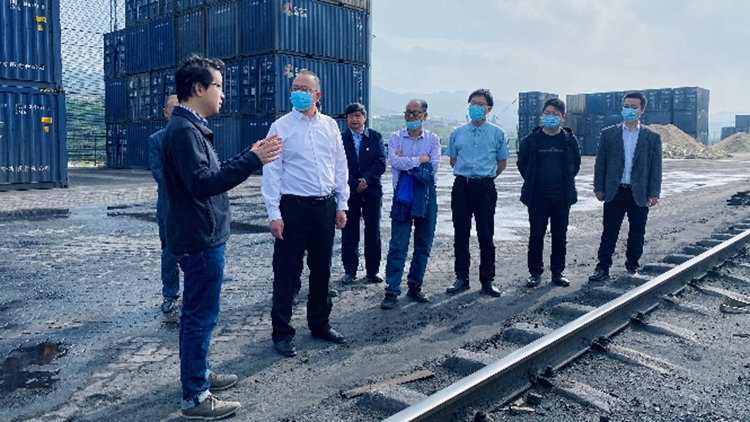 郭瑾一行在商洛陸港實業(yè)集團有限公司總經(jīng)理譚震、集團黨支部書記李開旺、副總經(jīng)理張同謙等人陪同下參觀了公司貨場,觀看了公司形象宣傳片。