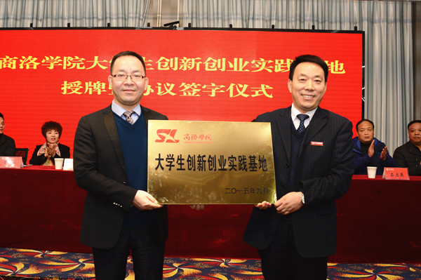 12月24日下午,我校與陜西森弗天然制品有限公司在商州電子商務(wù)產(chǎn)業(yè)孵化基地簽署《校企合作共建大學(xué)生創(chuàng)新創(chuàng)業(yè)實(shí)踐基地協(xié)議》。校黨委副書記彭虎軍與森弗公司董事長金新康共同為大學(xué)生創(chuàng)新創(chuàng)業(yè)實(shí)踐基地揭牌。簽字授牌儀式由教務(wù)處處長李超主持。