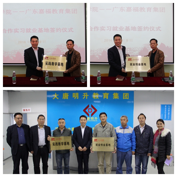 在商洛學(xué)院—廣州嘉福教育集團(tuán)、深圳大唐明升教育集團(tuán)校企合作實(shí)習(xí)就業(yè)基地簽字及授牌儀式上,廣東嘉褔教育集團(tuán)董事長(zhǎng)張利輝,深圳大唐明升教育集團(tuán)總經(jīng)理唐后元及各實(shí)習(xí)就業(yè)學(xué)校領(lǐng)導(dǎo)對(duì)彭虎軍一行表示熱烈歡迎,彭虎軍首先代表學(xué)校對(duì)嘉福教育集團(tuán)及深圳大唐明升教育集團(tuán)對(duì)我校實(shí)習(xí)就業(yè)工作的大力支持表示衷心感謝,對(duì)實(shí)習(xí)就業(yè)單位給予我校實(shí)習(xí)就業(yè)學(xué)生的培養(yǎng)指導(dǎo)和服務(wù)給予肯定,并向與會(huì)師生詳細(xì)介紹了我校的歷史、發(fā)展歷程、辦學(xué)目標(biāo)、辦學(xué)理念、學(xué)科專業(yè)建設(shè)、實(shí)習(xí)就業(yè)及近年來我校辦學(xué)所取得的成績(jī)。他指出,校企合作人才培養(yǎng)是我校升本以來探索應(yīng)用性人才培養(yǎng)的主要途徑,是助推我校向應(yīng)用型本科院校轉(zhuǎn)型的條件保障,學(xué)校高度重視與各企業(yè)單位的深度融合,將結(jié)合各實(shí)習(xí)學(xué)校領(lǐng)導(dǎo)和教師的意見,不斷優(yōu)化人才培養(yǎng)方案,加大實(shí)踐教學(xué)力度,加強(qiáng)實(shí)習(xí)就業(yè)基地建設(shè),逐步構(gòu)建產(chǎn)教融合、校企合作和協(xié)同育人新模式。同時(shí),我校也成為廣東嘉褔教育集團(tuán)及深圳大唐明升教育集團(tuán)人才培養(yǎng)基地。