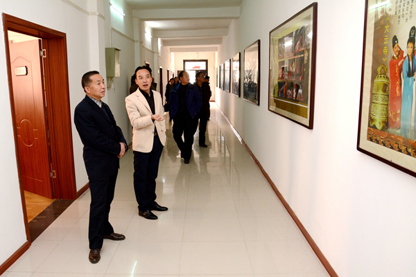 王思懷一行聽取了劇團(tuán)團(tuán)長李小斌的工作情況介紹,參觀了戲曲學(xué)院的工作環(huán)境。