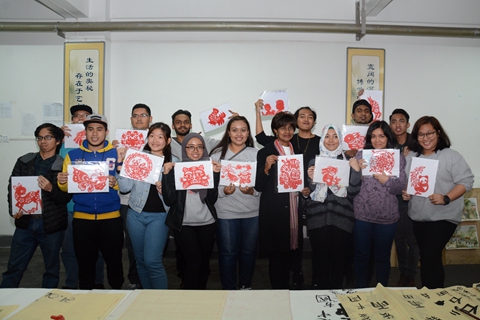 馬來(lái)西亞吉隆坡建設(shè)大學(xué)師生還參加了我校科技文化藝術(shù)節(jié)開幕式,共同觀看航模表演,并聽取了我校創(chuàng)建一流應(yīng)用型本科院校系列學(xué)術(shù)報(bào)告。交流團(tuán)學(xué)生還在我校教師的指導(dǎo)下學(xué)習(xí)剪紙和中國(guó)書法,表現(xiàn)出了濃厚的興趣,并通過(guò)學(xué)習(xí),完成了自己的作品,寫出了“我愛中國(guó)”、“我愛商洛學(xué)院”等書法作品。