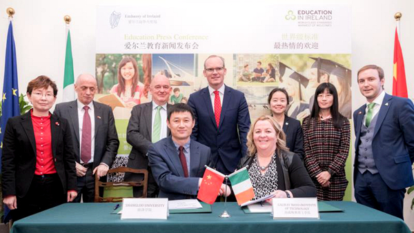 3月15日,愛爾蘭高等教育新聞發(fā)布會在愛爾蘭大使館舉行,愛爾蘭高校與多所中國高校簽署高等教育合作備忘錄。愛爾蘭副總理兼外交部與貿(mào)易部部長西蒙·科文尼、愛爾蘭駐華大使李修文、中國教育國際交流協(xié)會副秘書長沈雪松、副校長劉勇以及合作高校領(lǐng)導(dǎo)出席發(fā)布會。劉勇代表學(xué)校與愛爾蘭高威梅奧理工學(xué)院副校長凱特·努恩簽署了合作備忘錄,這是我校首次與愛爾蘭高校簽訂合作協(xié)議。
